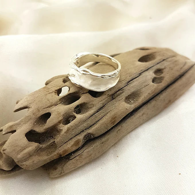 Crafted from the finest sterling silver, this organic ring boasts a unique, wild shape that adds a touch of nature to your jewelry collection. Its natural design is sure to make a statement, elevating any outfit with its effortless elegance. Embrace the beauty of the outdoors with this stunning silver ring.